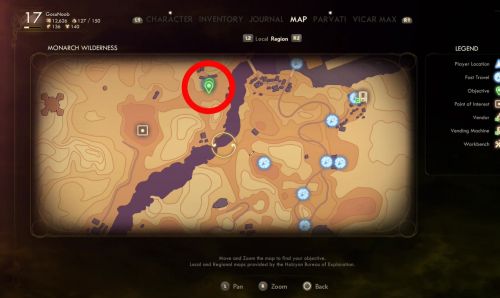 Летите на Монарх, а потом доберитесь до локации Лагерь мародеров на реке. Нужный предмет спрятан в желтом контейнере, расположенном снаружи лагеря.
