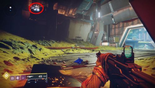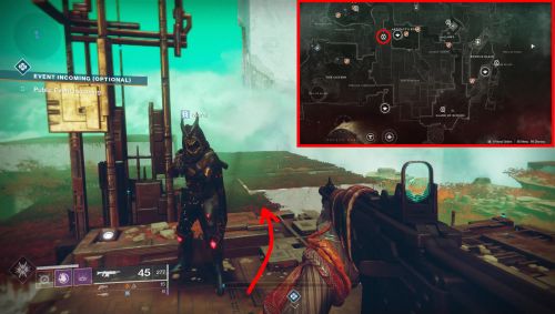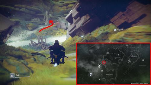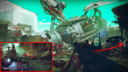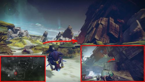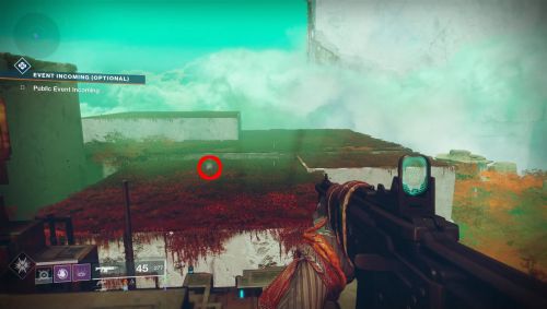 Его довольно легко найти, но для этого вам придется думать нестандартно. Приземляйтесь в нужной локации, а потом развернитесь лицом к антенной конструкции на платформе. Подойдите к краю и посмотрите вдаль. Вы увидите куб, парящий над красной травой – просто выстрелите в него отсюда.