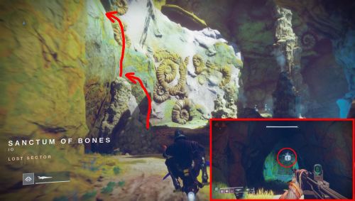 Преобразователь вексов находится возле входа в «Святилище костей». Появитесь в локации «Разлом», а затем идите в пещеру. Как только войдете в основной зал, посмотрите налево. Вы увидите столб из известняка. Запрыгните на него, а потом поднимитесь на выступ над ним. Это приведет вас в маленькую комнату, где лежит нужный предмет.