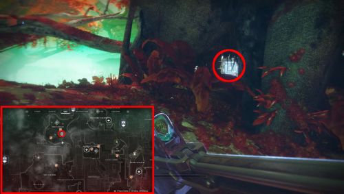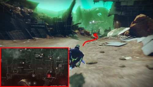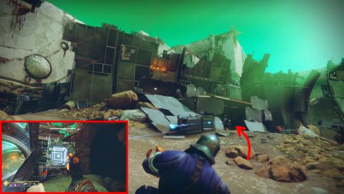 Приземлитесь в «Крае Артефакта» и идите к «Реликвиям». Спрыгните в яму и следуйте по туннелю слева. Как только вы окажетесь в районе, где проходит открытое мероприятие, поверните налево и найдите нишу в стене – там будет куб.