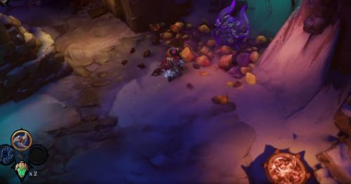 Если у вас не получается зажечь кристаллы, то не исключено, что вам необходимо для начала приобрести соответствующий апгрейд у Дит. После кидания меча снова возьмите под управление Раздор и используйте искру. Пройдя через проход, двигайтесь немного влево, а потом поверните направо к отверстию. В итоге вы найдете сундук с доспехами.