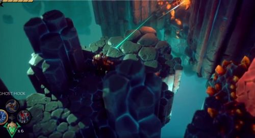 Совершите прыжок и заберитесь на площадку для эфирной искры. Активировав сферу, начните катить ее вперед, направо и назад, чтобы обойти стены и добраться до отверстия. Шипы на балке исчезнут, и вам удастся запросто подняться. Теперь сделайте портал. Второй разлом создайте возле бомбы. Встаньте возле нароста и притяните к себе взрывоопасный предмет, используя крюк. Подоврите проход, расправьтесь с противником, уничтожьте печать и откройте эпический сундук.