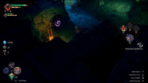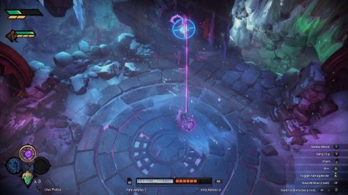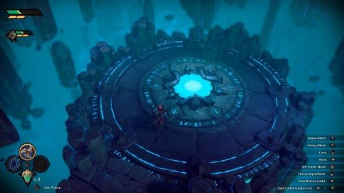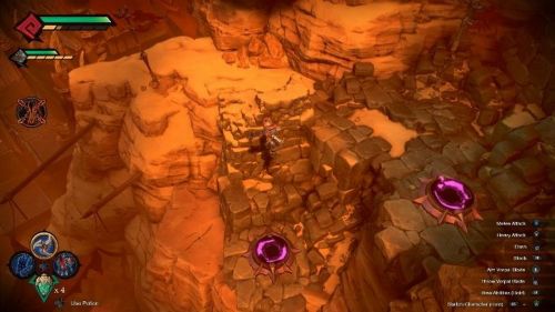 Для активации первого символа прохода, за которым спрятан сундук, вам необходимо будет ударить по синему кристаллу, а потом спрыгнуть на нижний уровень. Теперь перейдите на правую сторону локации и отыщите два фиолетовых знака, позволяющих создать порталы.