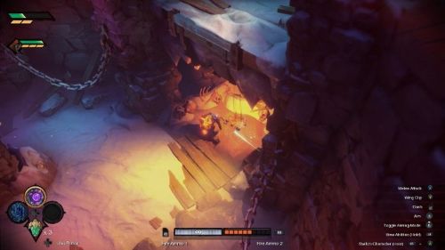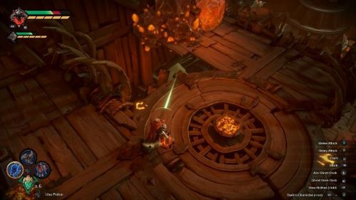С помощью этого оружия Война сможет бить противников на расстоянии и открывать различные секретные места и тайники. Теперь направляйтесь в основной зал в Бездне и отыщите синюю кнопку на стене. Ударьте ее мечом для открытия прохода.