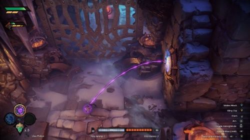 Теперь киньте бомбу в стену с трещинами, чтобы создать проход к ключу-кристаллу. Что касается второго ключика, то его можно найти в помещении, которое находится позади портала, расположенного в правой части области.