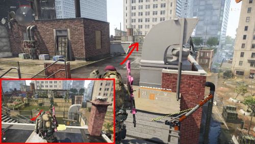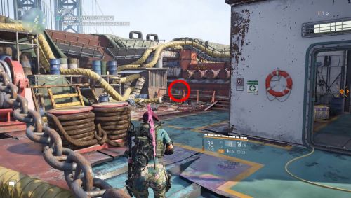 Первый сундук можно найти на границе между Бэттери-парк и Административным центром. Ищите низкое здание в углу, расположенное рядом с двумя высотными домами. Один из них украшен постером фильма, а другой – гигантским граффити с головой Медузы. Поднимитесь на крышу малоэтажного сооружения, затем следуйте по единственному пути через лестницу и ниши, пока не достигнете другой крыши с вентиляционным отверстием в середине. Контейнер будет стоять на вентиляции.