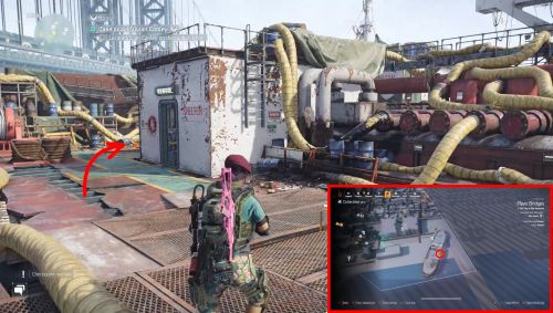 Следующий можно найти на строительной площадке рядом с убежищем в Финансовом квартале. Пройдите на участок и следуйте вдоль правой стены к большому желтому генератору. Взаимодействуйте с ним, чтобы слить воду, а потом пройдите за генератор для нахождения ящика.