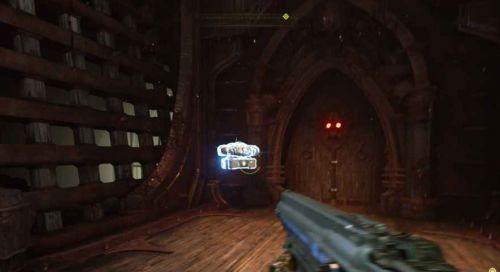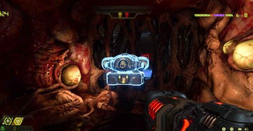 Отыскав чит-код IDKFA, поднимитесь по лестнице, а затем пройдите направо и разрушьте тут потрескавшуюся стену. Позади нее вы и отыщите нужную модификацию.