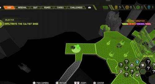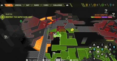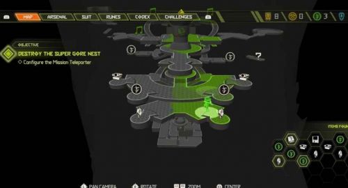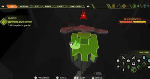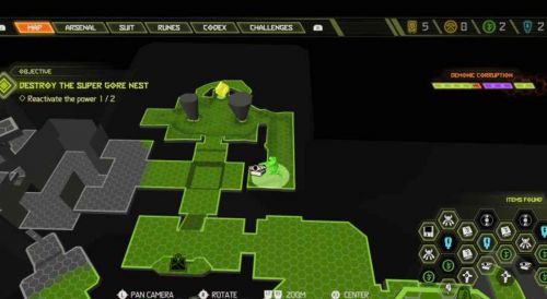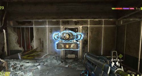 После активации первого силового терминала вы перейдете в новую область, где взаимодействуете с зеленым переключателем в виде черепа. Затем пройдите направо в этой зоне, чтобы найти модификацию, двигаясь по короткому пути.