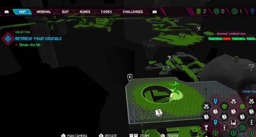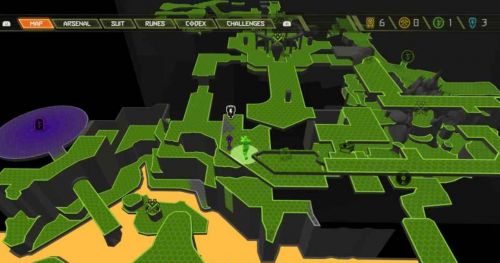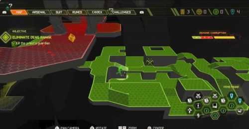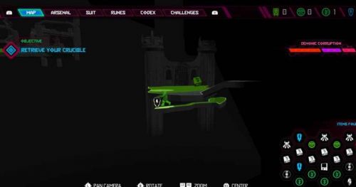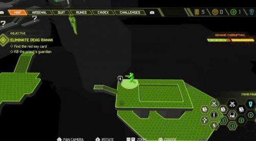 Пройдите в область, показанную на карте, а затем прыгните на синее вентиляционное отверстие в центре, а потом совершите рывок прямо к стене. Пройдите через новый участок и спрыгните в конце, чтобы найти ключ палача и батарею.