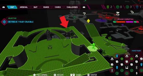 Ищите в области с радиоактивной кислотой. Как только вы доберетесь до вращающихся столбов, стреляющих снарядами, пройдите мимо них и войдите в маленький туннель с большим количеством кислоты, чтобы отыскать нужный предмет.