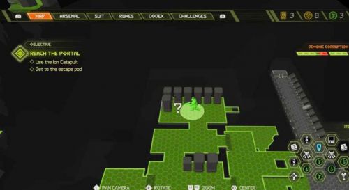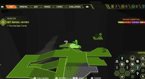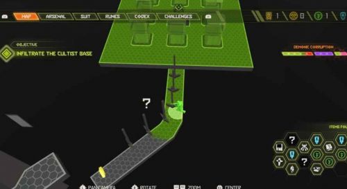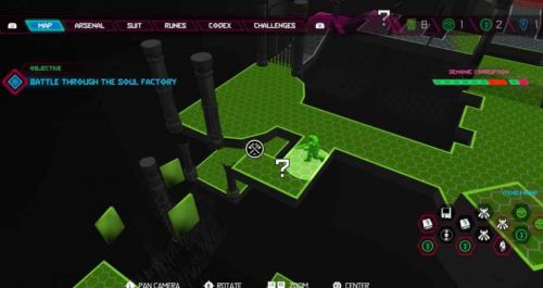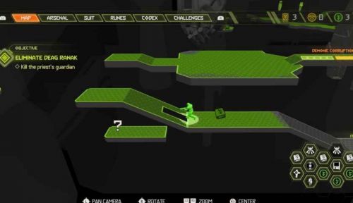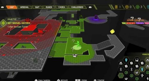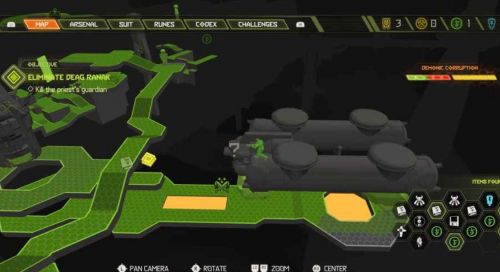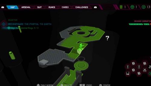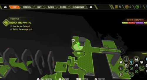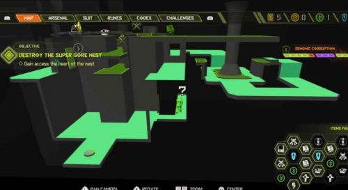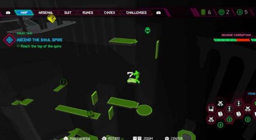 Откройте ворота, блокирующие доступ к синему вентиляционному отверстию, расположенному в центре области, показанной на карте. Прыгните на поток воздуха, развернитесь и осуществите рывок в сторону платформы справа, на которой находится предмет.