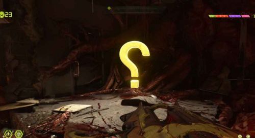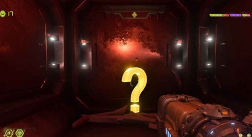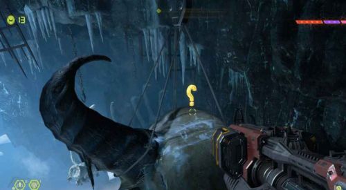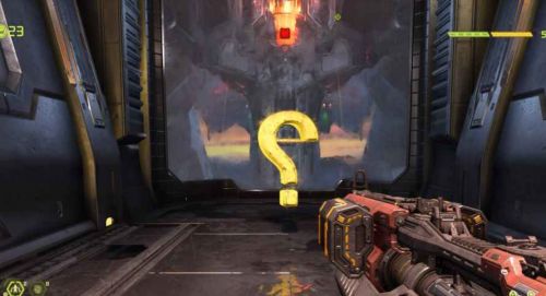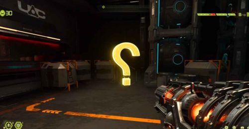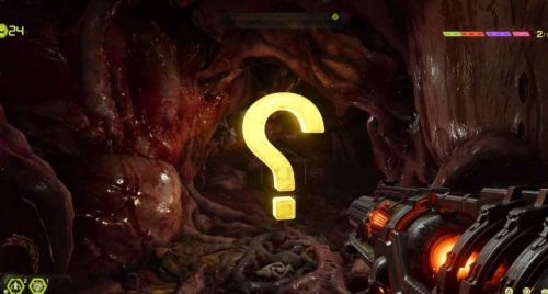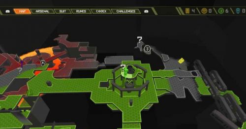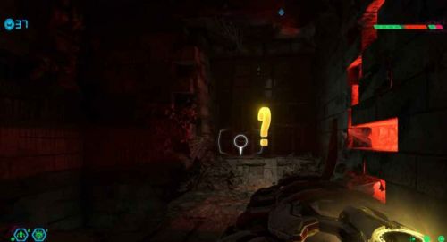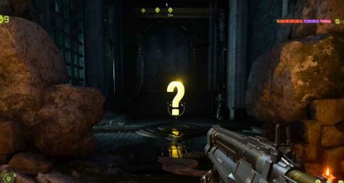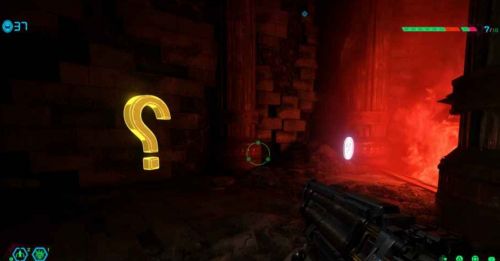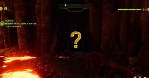 В помещении с движущимися платформами и лавовым озером прыгните на площадку в конце локации, которая движется вверх и вниз. Когда она начнет подниматься, спрыгните с нее и совершите рывок к знаку вопроса, который будет четко виден прямо перед вами.