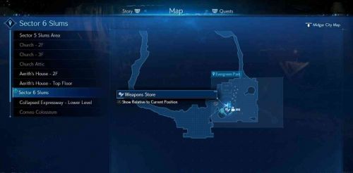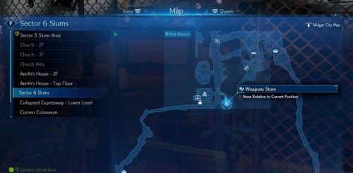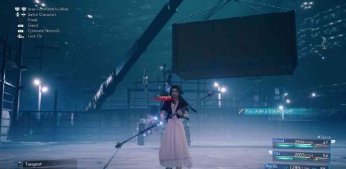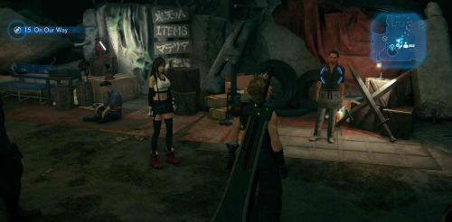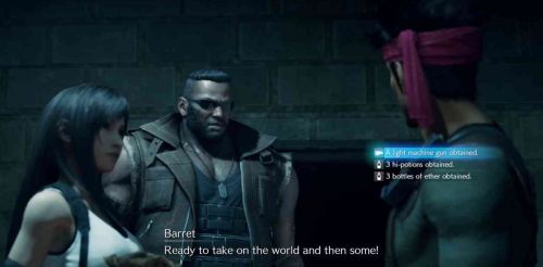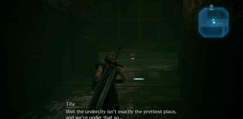 Когда вам предстоит играть за одну лишь Тифу (девушка окажется вдали от Клауда и Баррета), вам нужно будет перепрыгнуть через определенные огни, а затем спрыгнуть в вестибюль. В новом помещении вам предстоит забраться на одну из машин, а затем с нее прыгнуть на несколько стен, чтобы продвинуться по сюжету. Однако вместо того, чтобы подняться по первой лестнице, используйте брусья справа, дабы дойти до фиолетового сундука, в котором спрятано оружие.