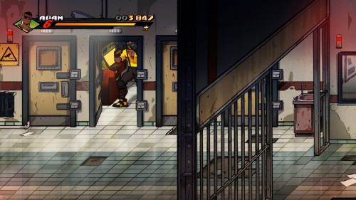 Выбравшись из своей камеры, расправляемся со всеми встреченными противниками, пока коридор не повернет направо. Тут нам предстоит сразиться с полицейскими, вооруженными шокерами. Выбиваем у них оружие из рук и избиваем всех врагов. Подбираем с земли шокер и открываем дверь наверху, которая ведет прямиком к аркадному автомату. Бьем по нему шокером и перемещаемся на арену.