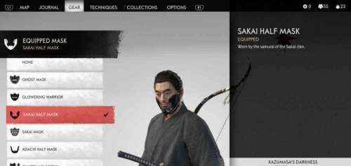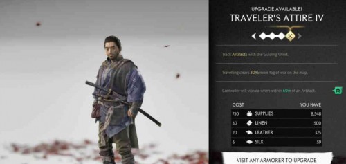 Разная броня не только значительно отличается друг от друга внешне, но и дают Дзину различные бонусы. Поэтому один комплект может лучше подходить для выполнения скрытных операций, а другой – для открытых столкновений с врагами. Доспехи можно также улучшать у бронников, тратя на это различные материалы.