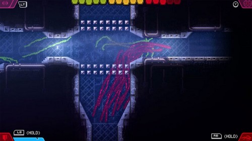 Первым делом вам необходимо будет сбросить биомассу в предыдущей комнате, пока вы не получите монстра 1-го уровня. Затем зарядитесь от электрического блока в середине помещения и активируйте лазер. Теперь используйте невидимость, чтобы перейти к первой части треснувшей стены. Вы останетесь невидимым, пока стоите на одном месте, поэтому никуда не перемещайтесь, а просто стреляйте отростками в блок электричества для получения новой энергии. Продолжайте делать то же самое в двух других участках стены с трещинами и, в конце концов, вы упадете к емкости, не теряя невидимость.