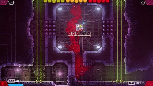 В следующем помещении вы увидите колбу в нижней части экрана. Взаимодействие с переключателем в середине локации откроет дверь, но также активирует множество лазеров впереди.