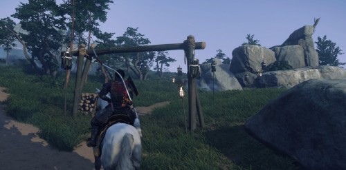 Пройдите направо через первые деревянные ворота, идите по тропинке через лагерь и выйдите из него. Продолжайте идти, пока не достигнете скалы слева от вас. Поднимитесь на нее, чтобы найти источник.