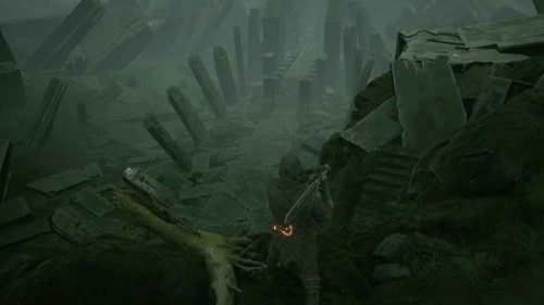 Сломайте деревяшку, а затем пролезьте сквозь отверстие. Здесь вам предстоит биться с мини-боссом по имени Вен Ноктивагу. Расправившись с ним, вы сможете взаимодействовать с оболочкой, лежащей на земле слева. Рекомендуем вам открыть у нее средоточие власти, тоски и решимости, а также память о смерти и силе.