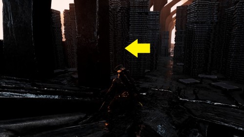 В локации Идол пепла продолжайте двигаться по основному пути, пока не доберетесь до большого деревянного моста, ведущего к саркофагу. Взаимодействуйте с ним для нахождения нового апгрейда. Появятся также два противника с большими мечами.