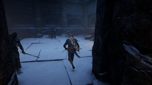 Разобравшись с Гришей в Заброшенных залах, идите дальше и пройдите по мосту. Расправьтесь с противником, использующим щит, и спуститесь по ступенькам вниз. Тут будут 2 выхода, один из которых приведет вас в помещении с тремя противниками. Разберитесь с ними, а потом откройте сундук, чтобы добыть апгрейд.