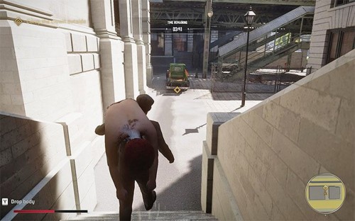 Откройте дверь хранилища и будьте готовы разобраться с... клоуном. Стреляйте в него из-за укрытия. Войдите в помещение. Подойдите к дробовику врага и возьмите его (он будет навсегда добавлен в ваш арсенал), а затем заберите труп клоуна. Начните тащить его наверх – к лестнице прибудут новые охранники. Бросьте труп и разберитесь с противниками. Убив их, снова возьмите тело. Продолжайте идти вперед.