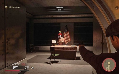 Пройдите через черный вход. Возле него будет стоять пикап. Подойдите к нему, чтобы завершить миссию. В награду вы получите костюм клоуна и золотой дробовик (если вы не забыли подобрать его).