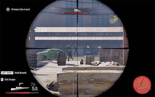 Уничтожив первую группу гангстеров, вы должны будете вовремя добраться до зоны погрузки. У вас будет мало времени, поэтому как можно скорее покиньте точку обзора и бегите к отмеченному месту.