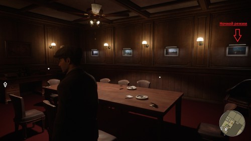 Ее можно выполнить только ночью. Для изменения времени суток посетите конференц-зал на первом этаже (тот, где вы неоднократно встречались с Сальери и другими гангстерами во время сюжета). На стене этой комнаты висят картины, каждая из которых меняет время суток. Взаимодействуйте с первым рисунком справа.