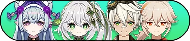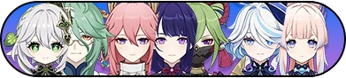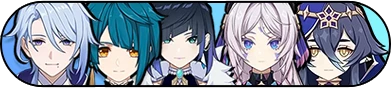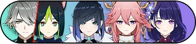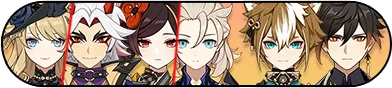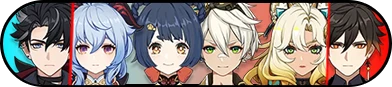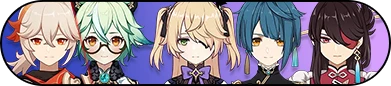 Кадзуха, Лань Янь, Сянь Юнь, Венти, Тиори, Кэ Цин, Аль-Хайтам. |