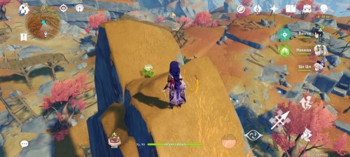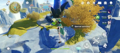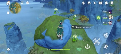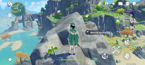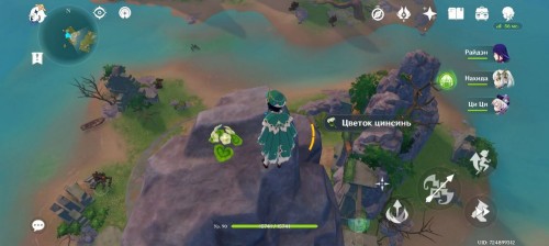 От данжа «Владения Гуюнь» заберитесь на возвышенность на севере. Оттуда летите на самый северный остров, к Гео гипостазису: здесь цветки растут на каменных столбах.
