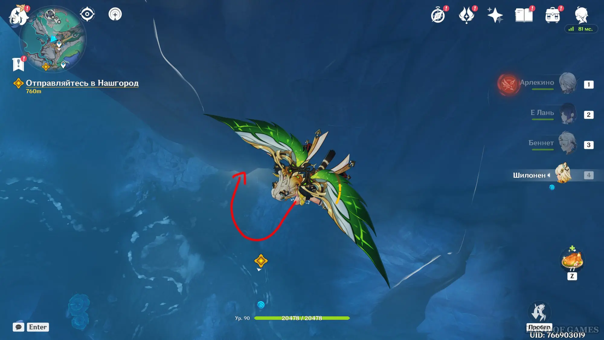 - Расположение: вход в подземелье с боссом можно найти к юго-востоку от города Мондштадт, на парящем острове.