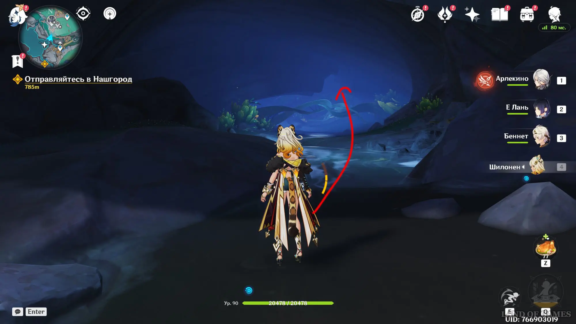 - Расположение: телепортируйтесь к путевой точке возле Склона Зимородка и Озера Лухуа, а затем спуститесь с утеса на юге и следуйте по дороге к пещере. На изображении ниже показана точная локация.