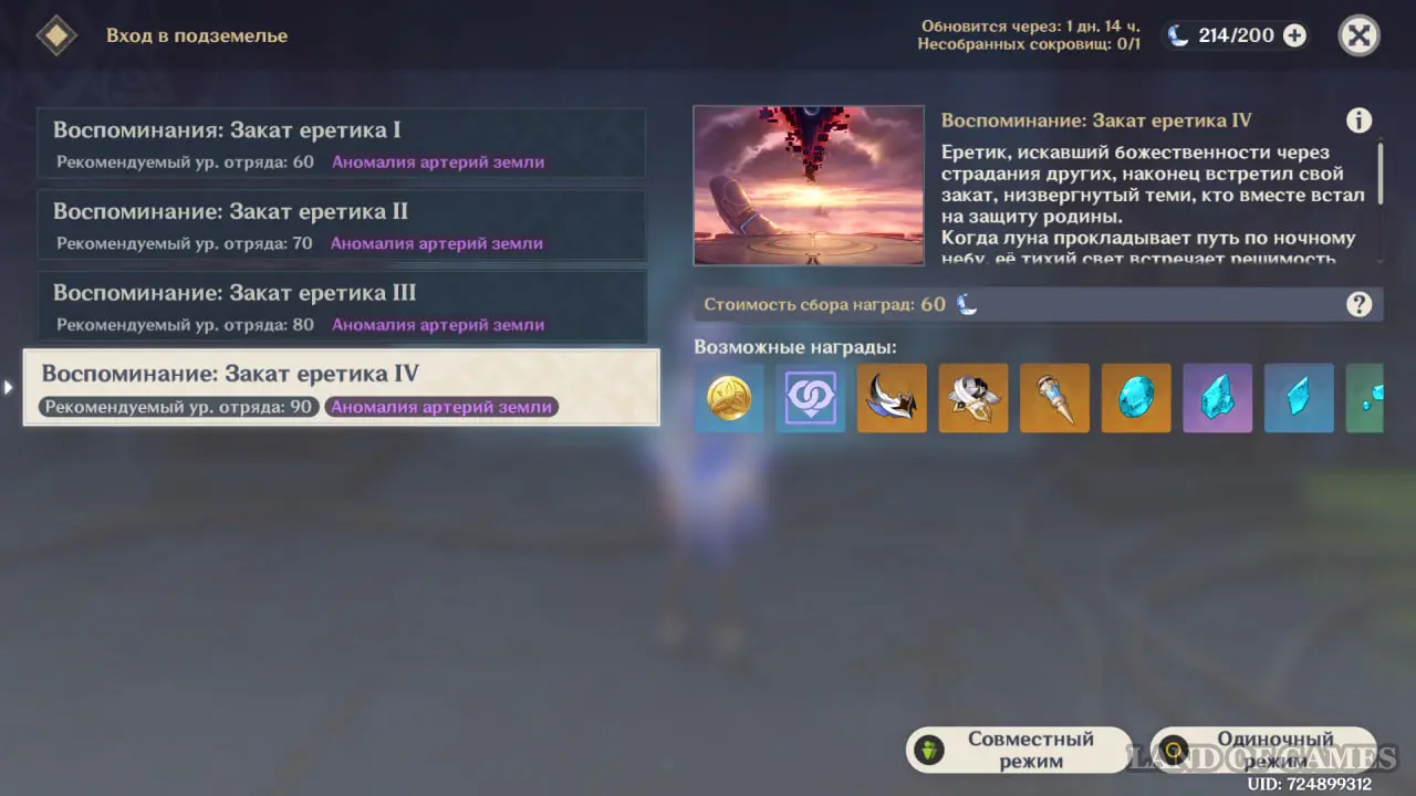 - Стоимость сбора сокровищ: требуется 60 единиц первородной смолы.