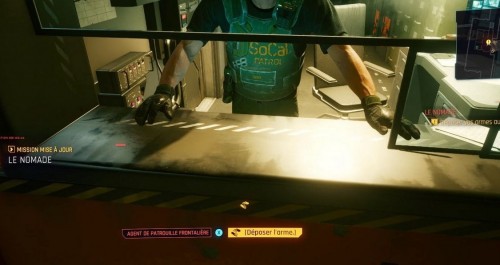 Подъезжайте к границе и зарегистрируйтесь вместе с Джеки, а затем выйдите из машины и войдите в здание пограничной службы. Оставьте оружие на стойке администратора перед тем, как идти в комнату 2. Сядьте и ждите.