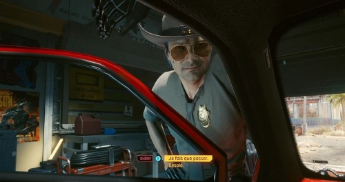После кат-сцены поговорите с механиком и решите сами разобраться с этой технической проблемой. Подключите провода и сядьте в машину. Как только вы сделаете это, появится местный шериф.