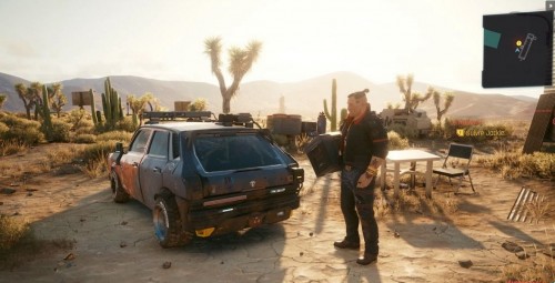 По пути в лагерь Альдекальдо Ви потеряет сознание. Вы проснетесь в компании Митча. Выйдите из машины и следуйте за кочевником, чтобы встретиться с Солом и Панам.