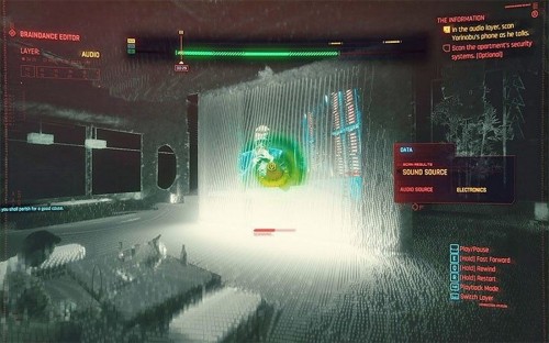 Когда решите головоломку, можете остаться в брэйндансе и использовать все его возможности, чтобы узнать больше информации о технологии. Когда закончите, остановите запись.