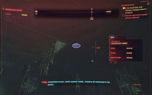 Завершив подслушивание разговора, вернитесь на визуальный слой. Возобновите воспроизведение и остановите его на 2:03 минуте. Отсканируйте орудие автоматической защиты, изображенное на картинке. Тем самым вы выполните дополнительную задачу по сканированию всех систем безопасности.