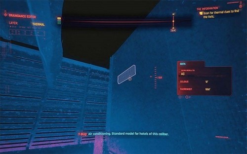 Вы разблокируете термошкалу – сразу же начните пользоваться ею. Перемотайте запись назад, чтобы найти новые подсказки с помощью нового анализирующего слоя. Первую вы найдете на 2:41 минуте – отсканируйте кондиционер на стене. Это первая из необязательных подсказок.