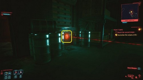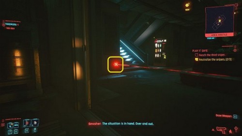 Нетраннер в караульной комнате занят своими делами, поэтому он точно не обратит на вас внимания. Разберитесь с ним тихо и поместите чип в консоль. Как только Альт получит сигнал от чипа, она немедленно прикончит всех оставшихся агентов Арасаки на этом уровне, тем самым открыв вам путь к Микоши. Выйдите с промышленного уровня через дверь справа.