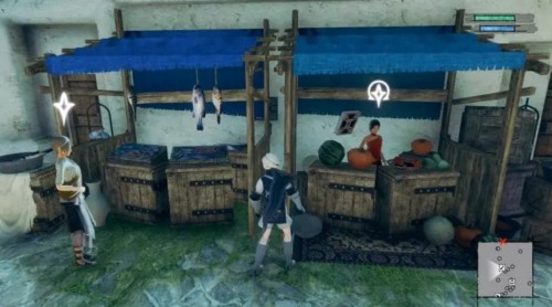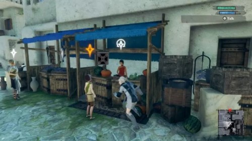 - Как начать: Поговорите с женщиной, сидящей у фонтана на рыночной площади в Деревне.