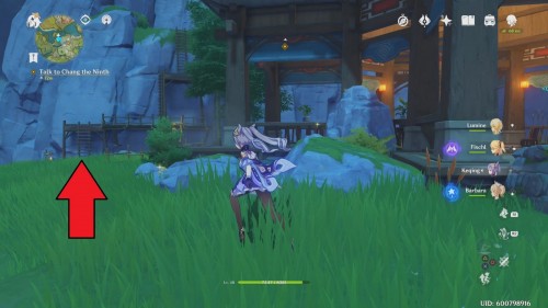 Он находится недалеко от резиденции Маоцая. Вы можете просто спрыгнуть отсюда вниз, отправиться на северо-запад и пройти по лестнице, чтобы найти Син Цю, ожидающего вас на верхней площадке возле каменного ограждения.