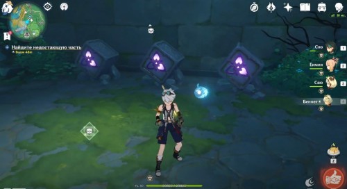 Наклонить вниз, то есть настроить высоту, необходимо только 4-й столб – все остальные нужно просто повернуть в требуемые стороны. Далее ударьте фиолетовую сферу на самом первом столбе, используя любого Электро персонажа (возможно, подойдут и другие стихии). После этого должна начаться кат-сцена, в которой вам покажут исчезновение купола.
