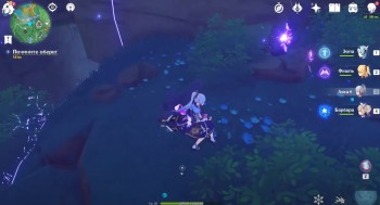 После взаимодействия со столпом активируйте чувство стихий и начните двигаться вслед за фиолетовым ветром. Вы доберетесь до лужицы с Гидро слаймами. Можете разобраться с ними или просто пробежать мимо. Затем поверните налево и бегите вперед через ущелье. Вдалеке вы заметите электрический барьер и Электро мага бездны.