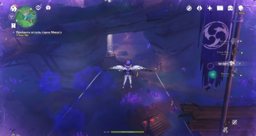 Когда соберете недостающие детали, отнесите их ученому. Снова посмотрите небольшой ролик. Теперь вам нужно будет пройти вглубь горна Микагэ. Для этого подойдите к обрыву, а затем спланируйте по направлению к квестовому маркеру. Долетев до печи, вновь побеседуйте с изобретателем.