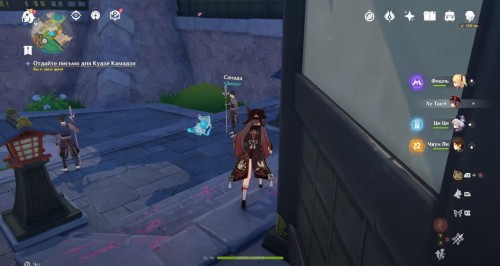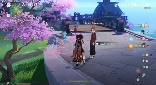 Нужный персонаж находится в городе Инадзума. Сначала вам нужно будет узнать о его точном местонахождении. Для этого доберитесь до отмеченной области и поговорите там со стражником по имени Санада. Узнав нужную информацию, спуститесь немного вниз и начните искать Кудзе в указанной зоне.