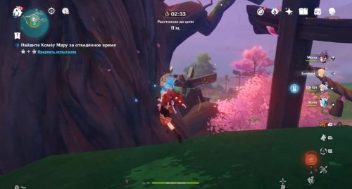 Теперь направляйтесь на поиски Комбу Мару. Бегите в сторону большого дерева в центре островка. Заберитесь на него сбоку, перейдите на ветку, чтобы перепрыгнуть через веревку, и залезьте на самый верх. Там вы и отыщите котенка.
