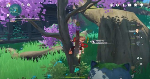 Поболтайте со своей пушистой подругой, чтобы узнать последние новости касательно храма. Кошка расскажет вам о новых проблемах. Согласитесь помочь ей и возьмите в свою команду Анемо, Гидро или Пиро героев. Дело в том, что только с помощью них можно будет убрать кучки грязи.